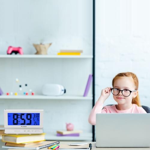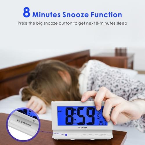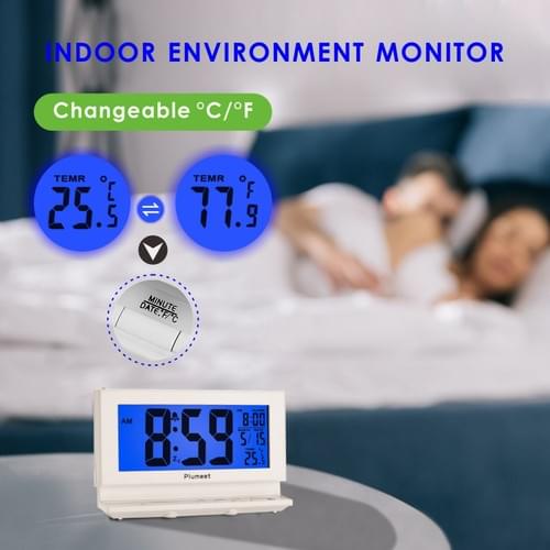 Plumeet Smart Night Light Digital Alarm Clock with Indoor Temperature, Battery Operated Clock Digita